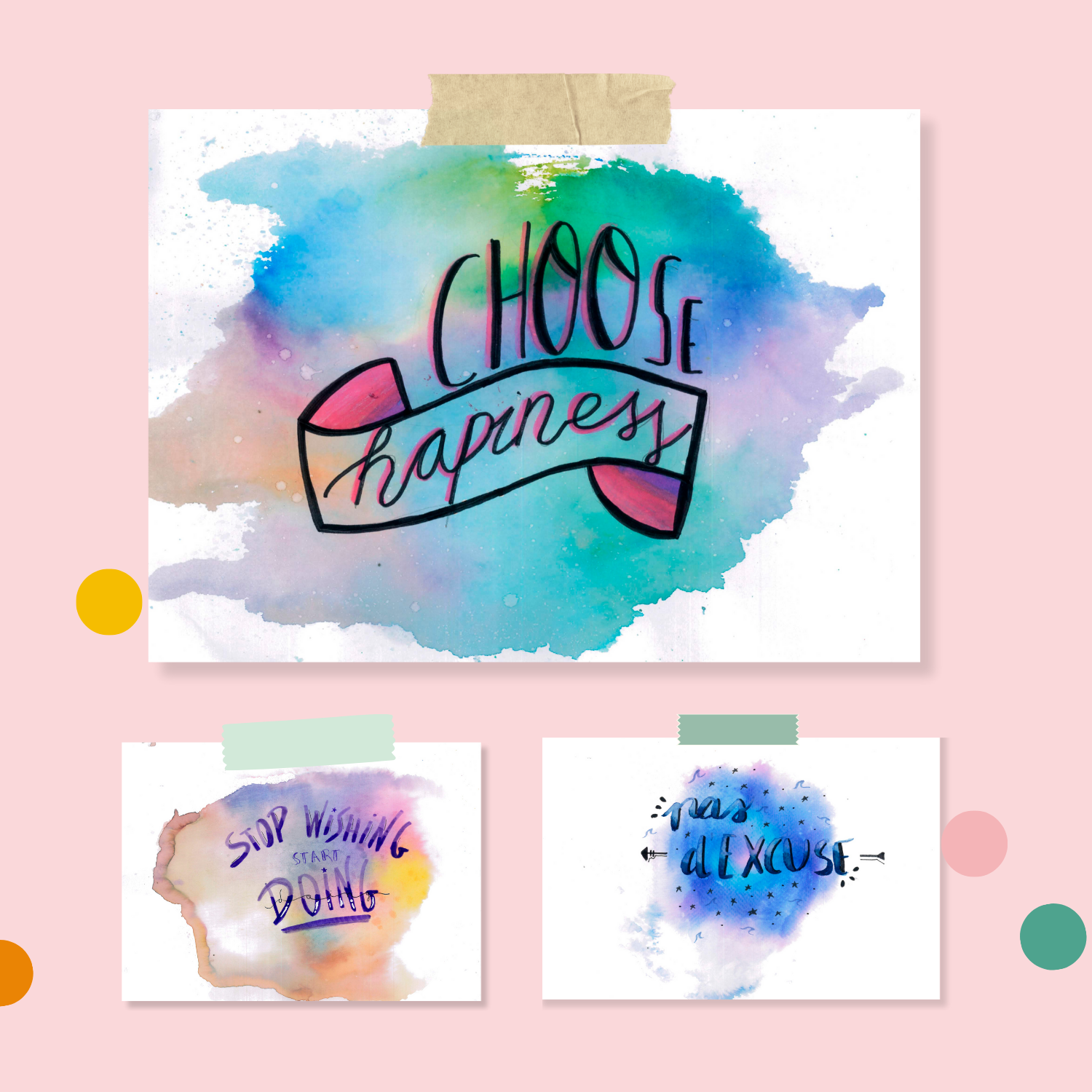 Una vez consolidada la base del lettering, experimentamos con la técnica mágica de aguadas con rotulador para obtener diversos fondos de degradados para el trabajo final.